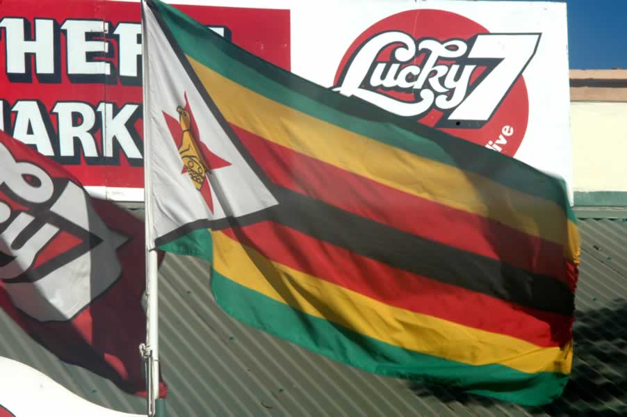 The national flag of Zimbabwe.